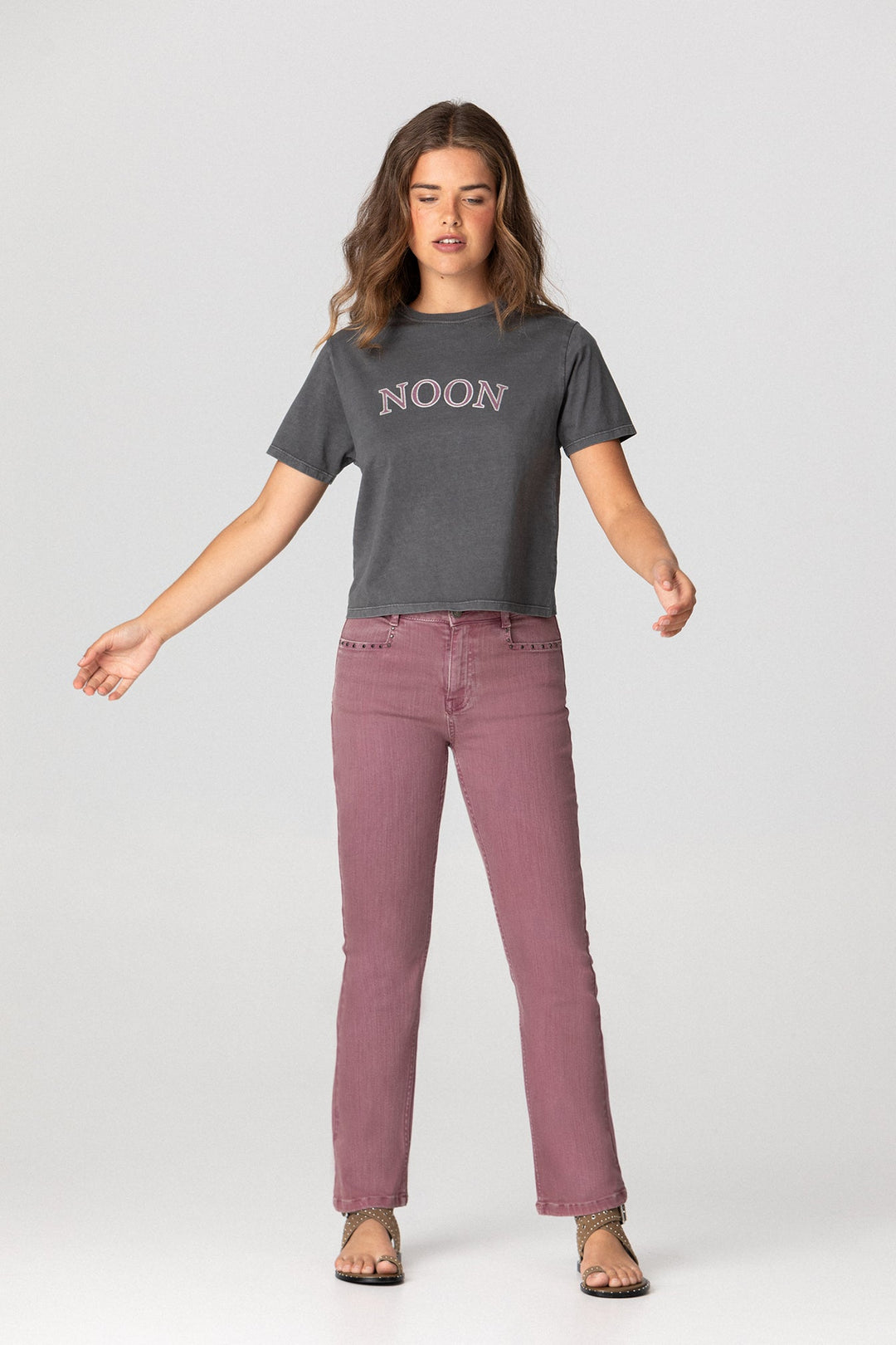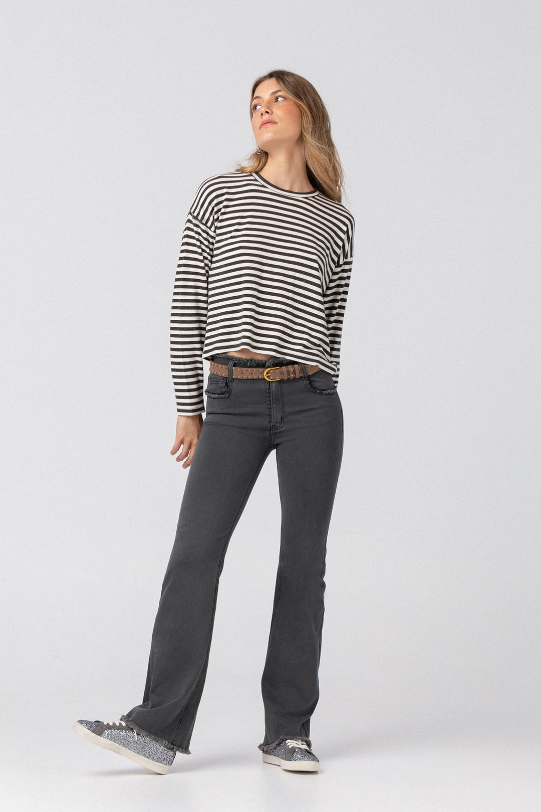 JEANS FLARE CROPPED TACHAS